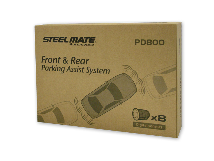 Parkovací asistent Steelmate PD800 s 8 digitálnymi snímačmi a akustickou signalizáciou určený pre inštaláciu do predného a zadného nárazníka vozidla.
